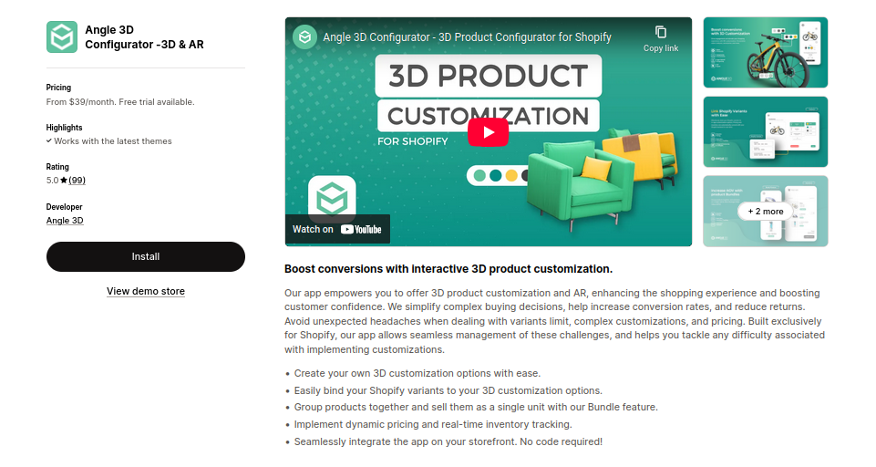 By allowing customers to visualize their product choices in real time, Angle 3D helps simplify decision-making, boost conversions, and reduce returns — especially for stores selling customizable or made-to-order products.